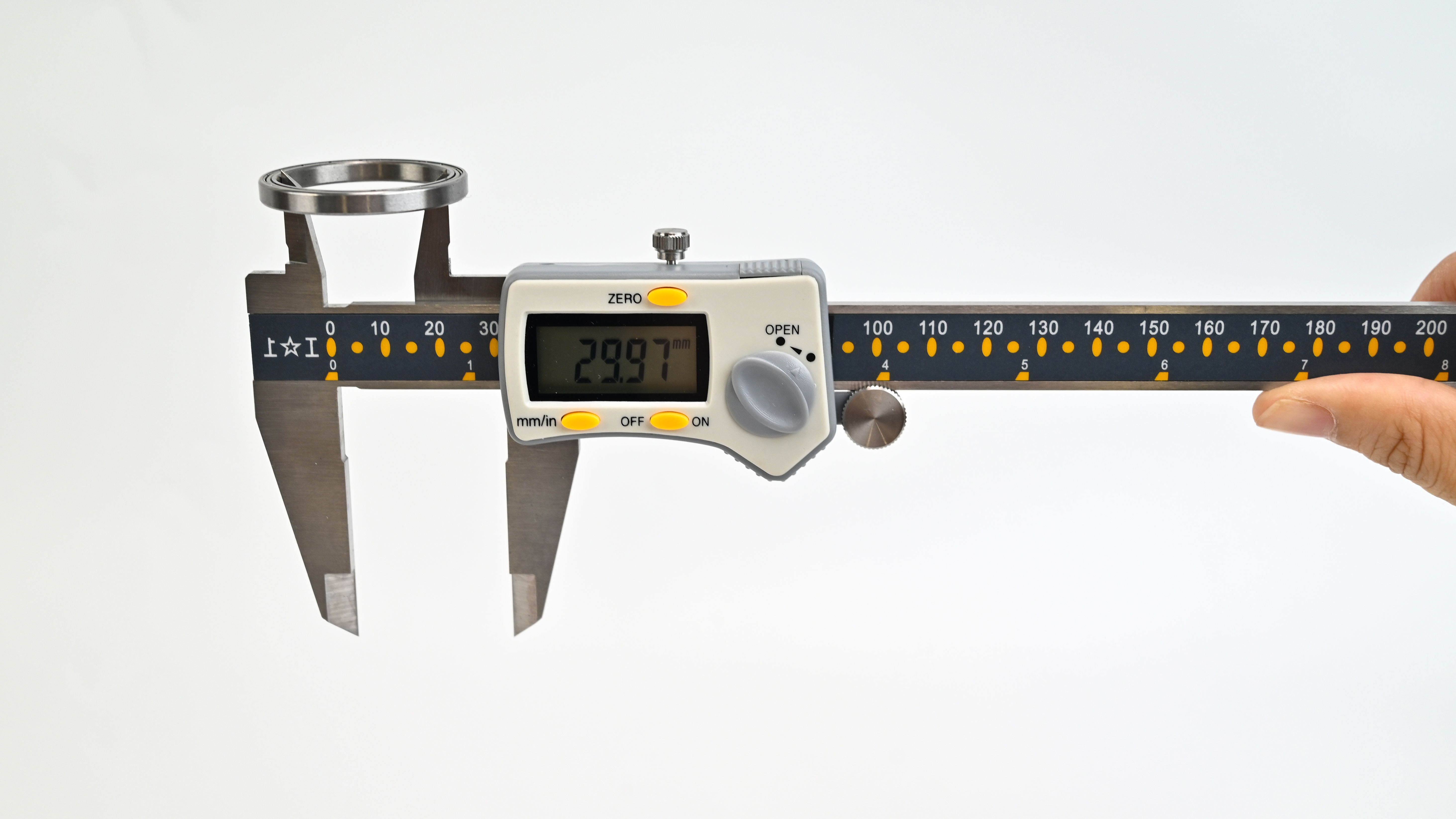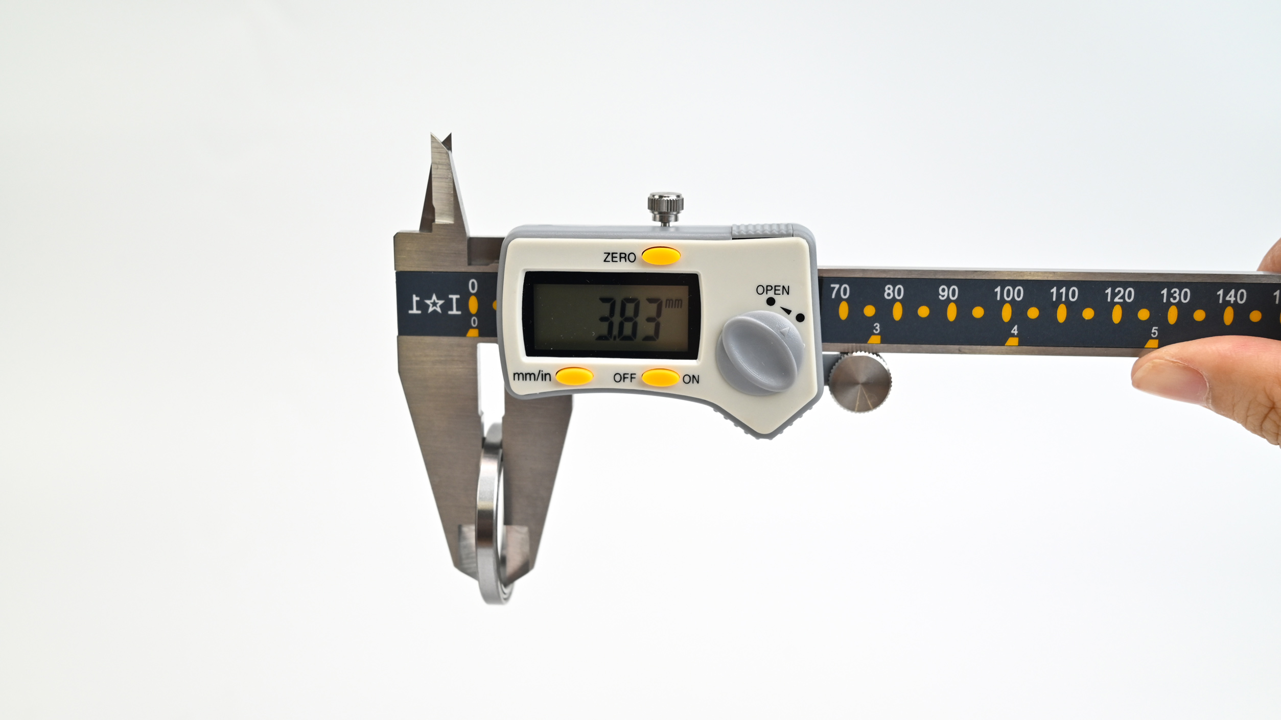 2. Open the caliper slowly until it fits snugly but not tightly against the inner ring.